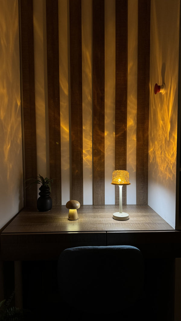 While most mood lights offer a static wash of color, SkyWave projects a living aurora that drifts across your walls—no apps, remotes, or visible pixels. A crystal-dome lens spreads true 360° waves, a silent USB-C battery lets you glow anywhere for six hours, and the lamp remembers your last setting so your favorite twilight returns with one tap. Portable, flicker-free, and cool to the touch, SkyWave is the only bedside light that turns an ordinary room into a moving night-sky experience.